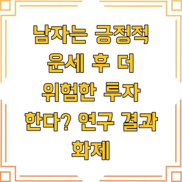 누구나 미래를 알고 싶어 하죠. 그래서 점괘나 운세 같은 것에 끌리는 걸지도 몰라요. 그런데 이런 비합리적인 요소들 이 우리의 투자 결정에까지 영향을 미친다면 믿으시겠어요? 네덜란드 에라스무스 대학의 탄(Tan) 등 연구팀의 2022년 연구는 바로 이 질문에 대한 놀라운 답을 제시합니다. 226명의 참가자를 대상으로 진행된 이 연구는 긍정적인 점괘를 받은 남성일수록 위험한 투자를 선택하는 경향이 훨씬 강하다는 것 을 보여주었어요. 더욱 흥미로운 점은, 평소 점괘를 믿지 않는다고 응답한 남성들에게서도 동일한 경향이 관찰되었다는 사실 ! 이는 긍정적인 예측이 의식적인 믿음 여부와 관계없이 무의식적으로 우리의 판단에 영향을 미칠 수 있음 을 시사합니다.