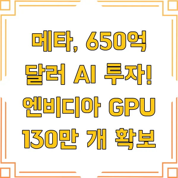 메타의 650억 달러 투자 계획 중 가장 눈에 띄는 부분, 바로 엔비디아 GPU 130만 개 확보 계획 입니다! 딥러닝과 같은 복잡한 연산 처리에 특화된 GPU는 AI 모델 학습 및 운영에 필수적인 자원입니다. 엔비디아는 현재 GPU 시장의 절대 강자죠. 메타가 엔비디아 GPU를 대량 확보하는 것은 AI 인프라 구축에 대한 확고한 의지를 보여주는 것과 동시에 엔비디아와의 협력 관계를 공고히 하려는 전략으로 해석됩니다.