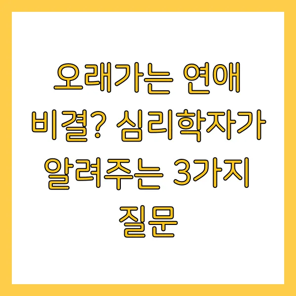 이 세 가지 질문은 연애 관계라는 복잡한 미로를 탐험하는 데 유용한 나침반과 같습니다. 각 질문에 대한 솔직한 답변은 현재 관계의 상태를 진단하고 미래를 위한 방향을 설정하는 데 도움을 줄 것입니다. 하지만 명심해야 할 것은, 이 질문들이 만능 해결책은 아니라는 사실입니다. 관계는 마치 살아 숨 쉬는 유기체처럼 끊임없이 변화하고 성장합니다. 따라서 정답은 없습니다! 끊임없는 소통과 노력을 통해 관계를 가꾸어 나가는 것이야말로 오래가는 사랑의 진정한 비결 입니다. 서로에게 귀 기울이고, 공감하며, 함께 만들어가는 관계만이 시간의 시험을 견뎌낼 수 있습니다. 그리고 기억하세요. 완벽한 파트너는 없지만, 함께 성장하며 완벽에 가까워지는 관계는 존재합니다.